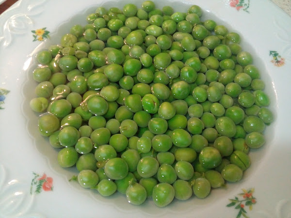 350 grms. de chicharos ya desgranados, cuatro huevos, aceite de oliva virgen extra y sal.