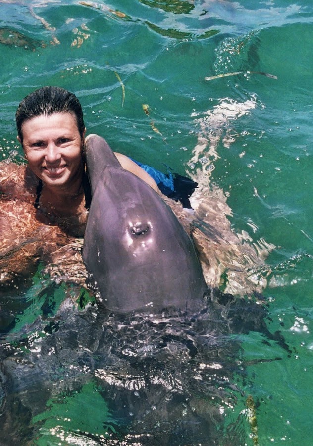 Sin prácticamente tiempo que dedicarle, muy tímidamente, casi podría decir que con miedo escénico, sin cámara de fotos digital a su disposición, eran las fotos de un teléfono móvil quien transmitía la imagen de lo que se cocinaba en sus fogones. Así comenzó la andadura, Mi cocina, la de Carmen Rosa, en éste mundillo gastronómico a través de internet. Hasta tal extremo que no puse mi verdadero nombre, ni mi imagen hasta pasado unos años, no me gustaba aparecer por los caminos virtuales, por lo que mi imagen fue un "avatar", un delfín y fueron éstos los que me dieron su imagen, foto tomada en Benalmádena (Málaga).