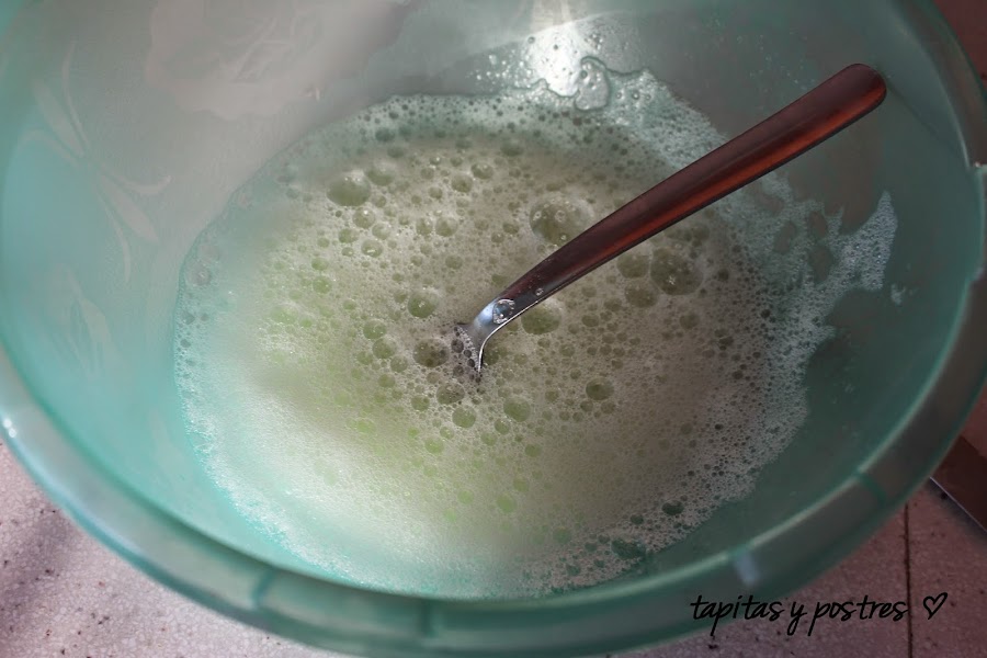 Escurrimos todo el caldo que se haya podido crear y batimos las claras hasta que estén espumosas.