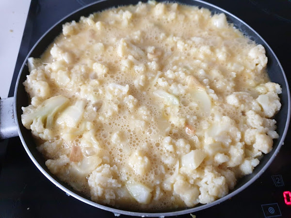 5. - Añadimos la coliflor y mezclamos bien.