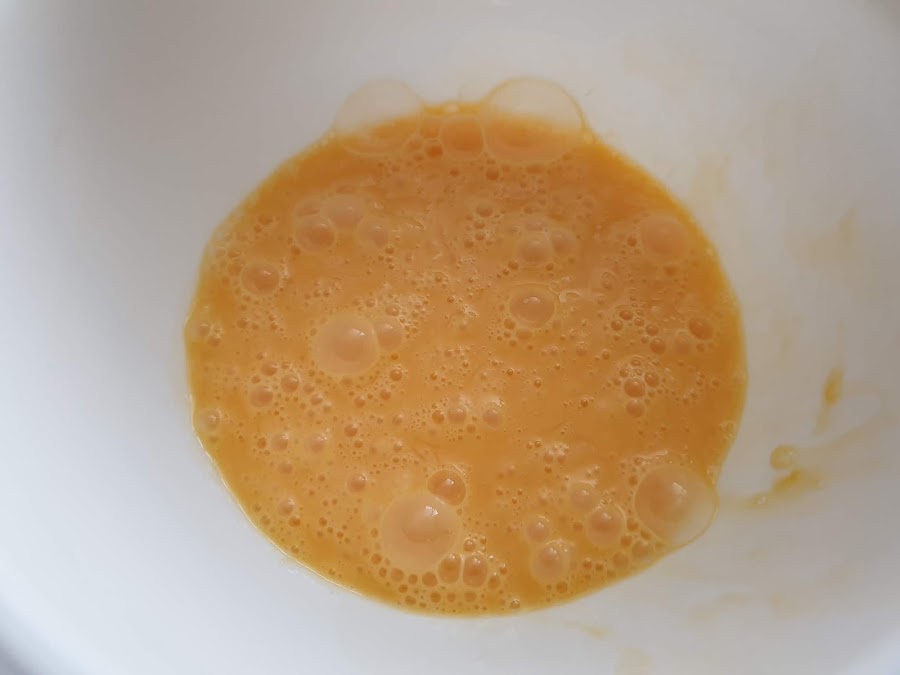 4. - Y ya seguimos como una tortilla normal y corriente, batimos los huevos con un poco de sal.