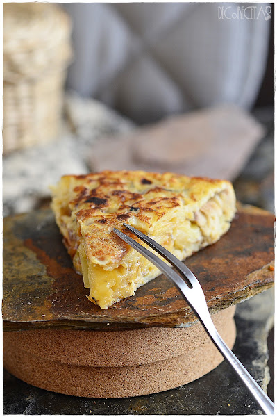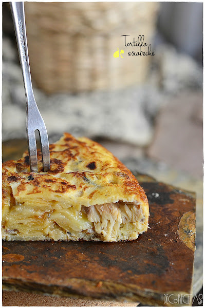 En si, es una tortilla de patatas como cualquier otra que realizamos en casa, el único toque es añadirle escabeche, en mi caso chicharro ya que me parece el mejor pescado para ello