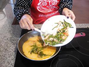 Tortilla de espárragos y salmón, preparación paso a paso