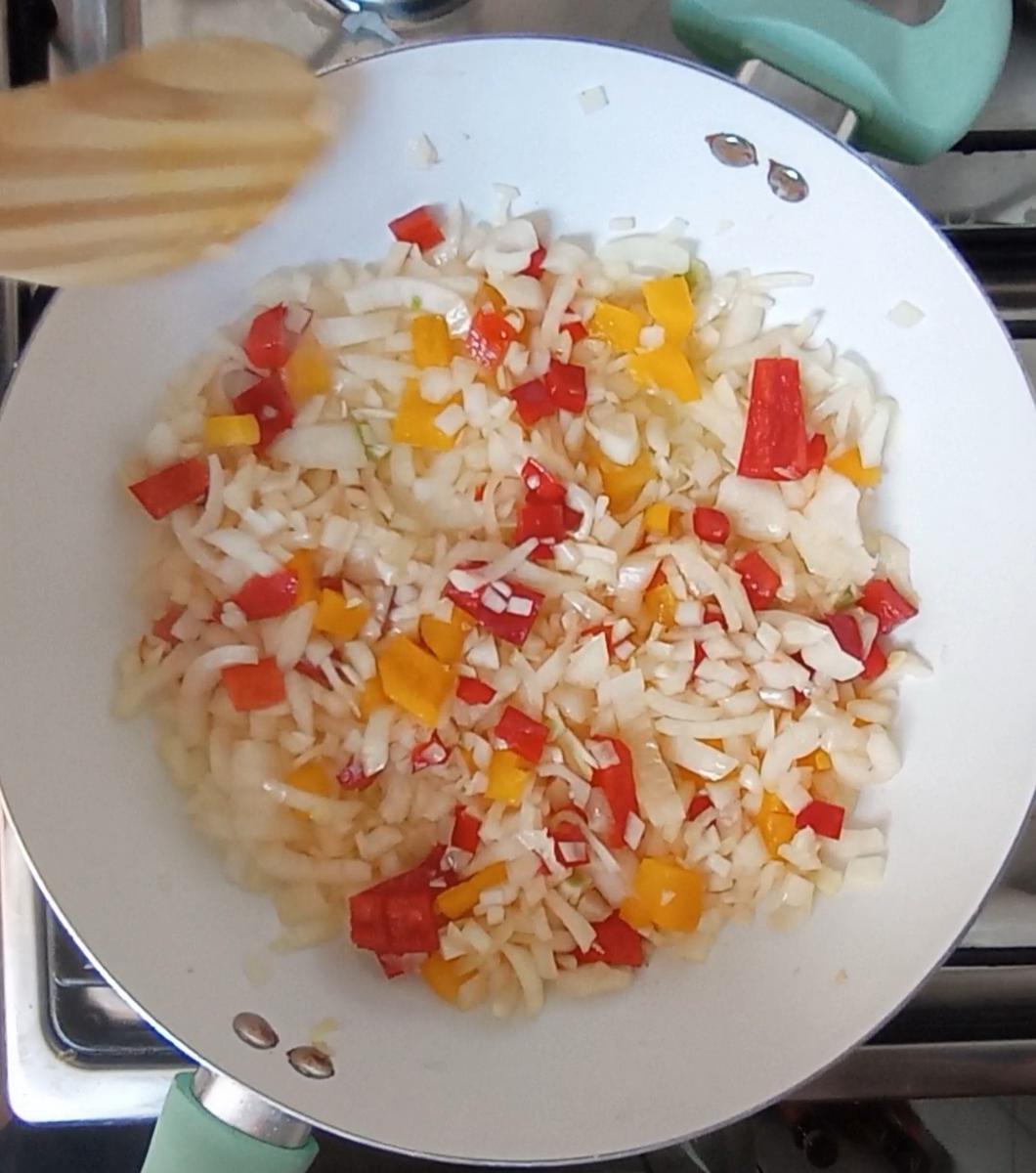 Batir los huevos con la crema y el queso rallado, sal,y pimentón, y reservarRehogar en una sartén grande con un hila de aceite, la cebolla picada Para pelar la cebolla sin llorar y el morrón picado, cuando esté transparente ir agregando la espinaca cortada, hasta que esté tierna y dejar enfriar .