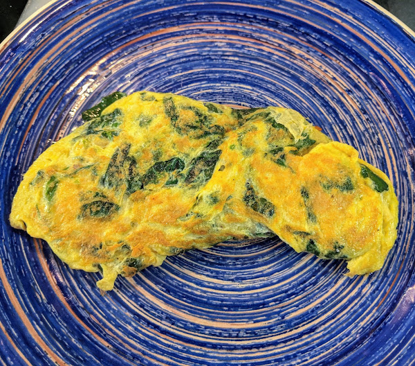 Salpimentamos los huevos y los batimos (no excesivamente) Echamos las espinacas y el queso