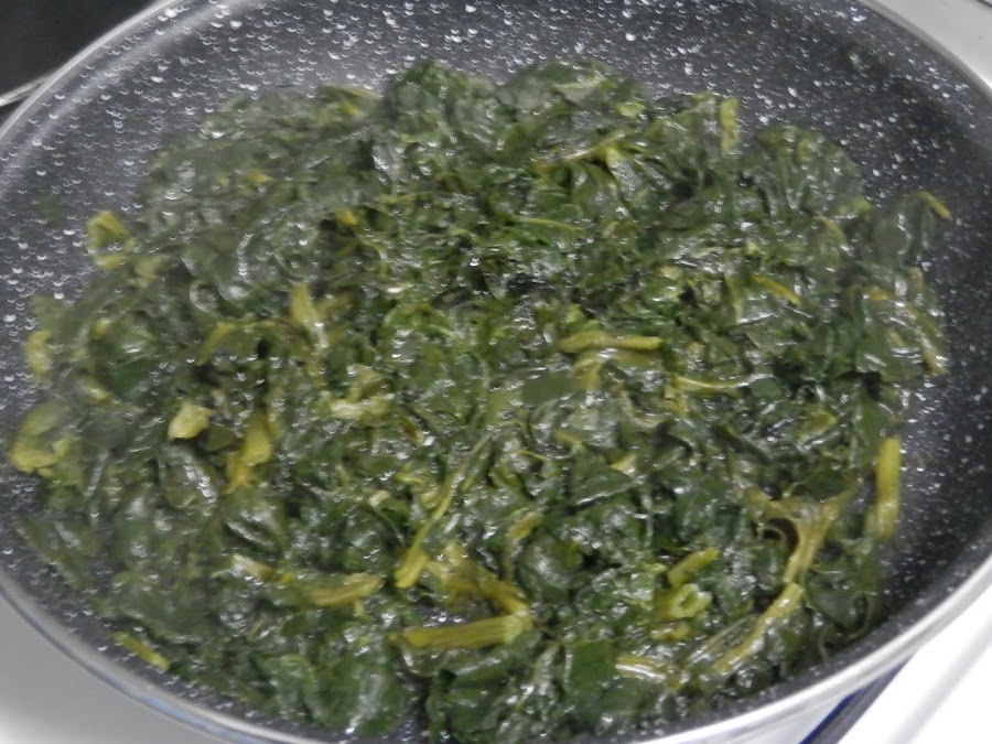 En una sartén con dos cucharadas de aceite, saltea las espinacas.