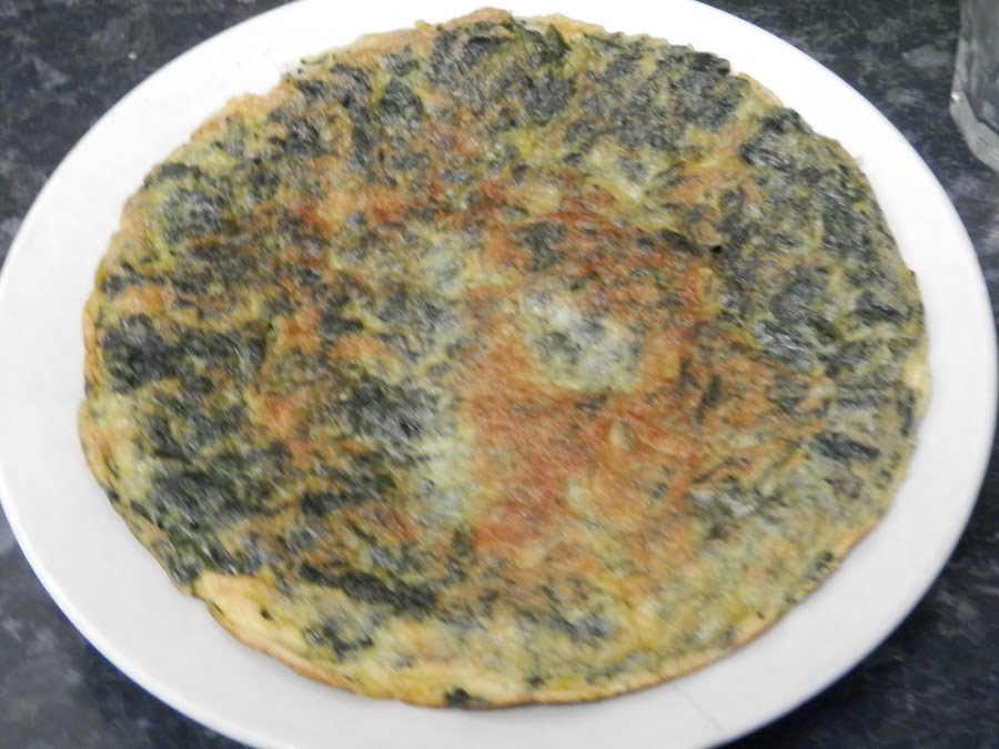 Añade las espinacas a los huevos batidos y cuaja la tortilla.