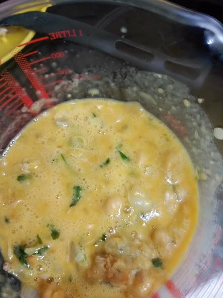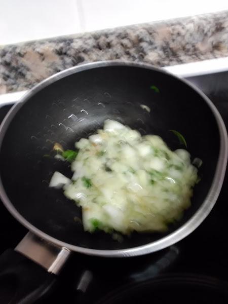 2.- Batir los huevos y añadir la mezcla anterior , el comino, la sal y hacer una tortilla.