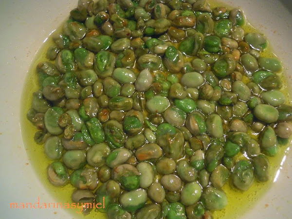 Pon una sartén con aceite al fuego, cuando esté caliente pon las habas.