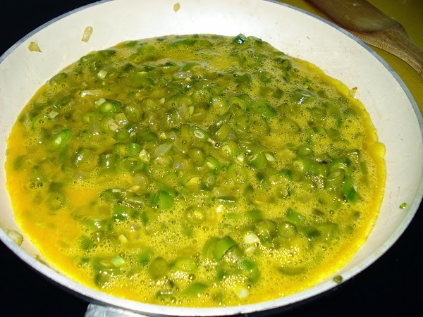 Lo importante, para que esta tortilla salga buena, es que las habas sean pequeñas pues se comen enteras, es decir con la vaina. Estas son del huerto que tiene mi marido como hobby, o sea totalmente ecológicas y los huevos de las gallinas que tiene por allí campando libremente.