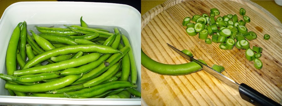 Lavamos las habas y las picamos en rodajas no muy gruesas.