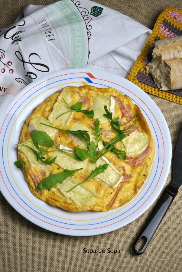 Repartir el jamón y el queso por encima y meter la sartén en el horno para que se termine de cuajar y el queso funda. Unos 10 minutos más o menos.