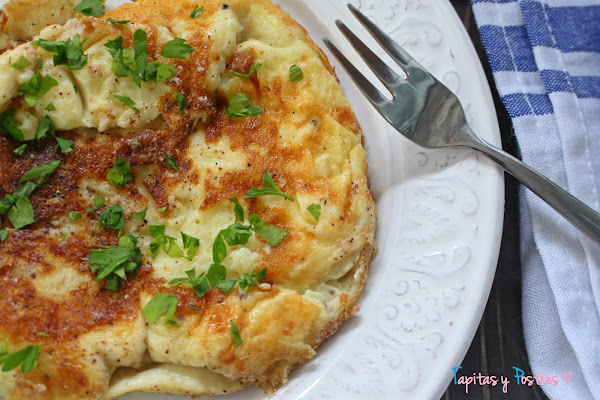 Servimos con perejil picado. Es una tortilla super ligera y delicada.