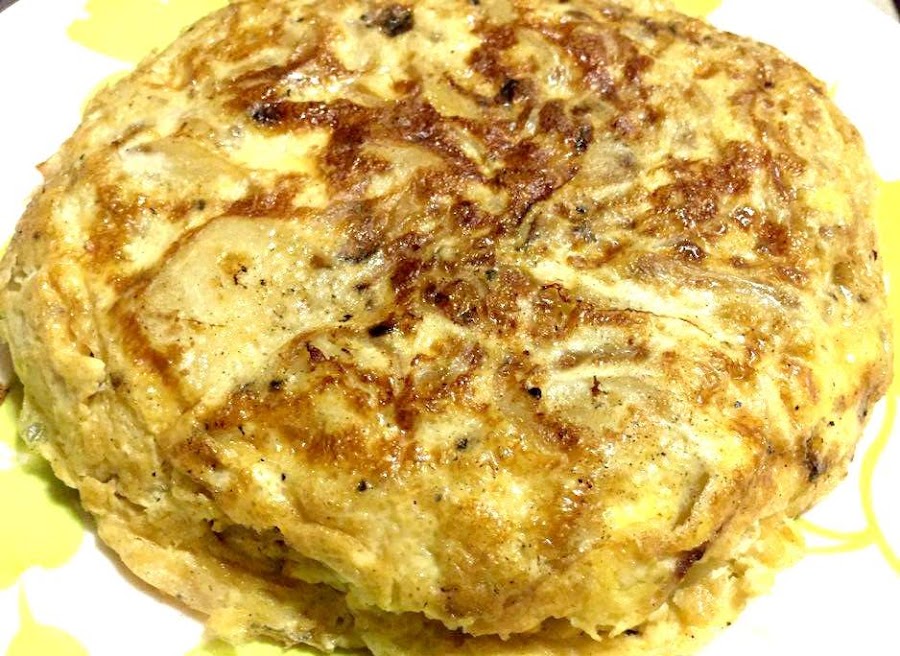 Cuando ves que ya se despega del sarte con ayuda de una espatula y el huevo esta cuajando, lo das vuelta con ayuda de un plato, volves a calentar el sarten con mas materia grasa y la colocas otra vez con la parte cruda para abajo unos minutos mas.