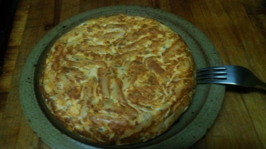 Esta tortilla se puede catalogar dentro de cocina de aprovechamiento ya que esta hecha con unos macarrones que nossobraron y como aqui no se tira nada esta es una buena manera de aprovecharlos. Simplemente cogi los macarrones boloñesa que quedaron les añadi queso parmesano rallado y un poco de oregano, añadi huevos hasta que vi la consistencia adecuada, eso depende