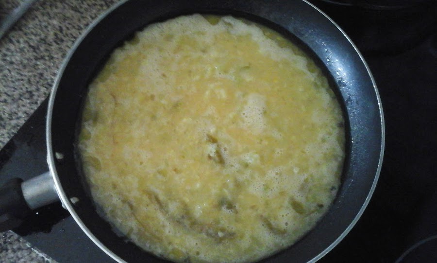 Cascamos los huevos en un plato, batimos y añadimos la patata deshecha, el calabacín y el pimiento y damos vueltas. En la sartén donde hemos frito las patatas, retiramos parte del aceite y echamos la mezcla que hemos hecho, cuando veamos que ya está cocinada por la parte que toca la sartén, cogemos un plato y le damos la vuelta y esperamos que se cuaje la otra parte, damos varias vueltas para asegurarnos que la tortilla está cocinada por ambos lados. La sacamos y ya está lista para comer, esta tortilla os puede servir por si tenéis niños en casa y no les gusta mucho la verdura es una forma de que se la coman sin que se den cuenta.