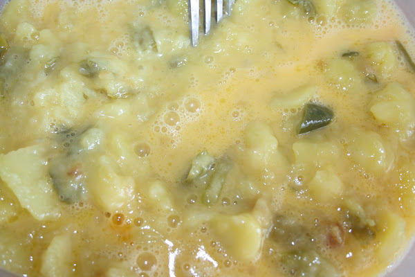Mientras, vamos batiendo los huevos (yo les añado un chorrito de leche, aporta esponjosidad).