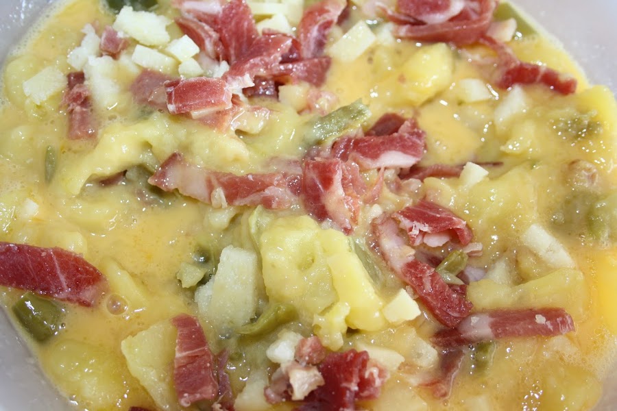 RECETA DE TORTILLA DE PATATA CON PIMIENTO VERDE, JAMÓN E IDIAZABAL