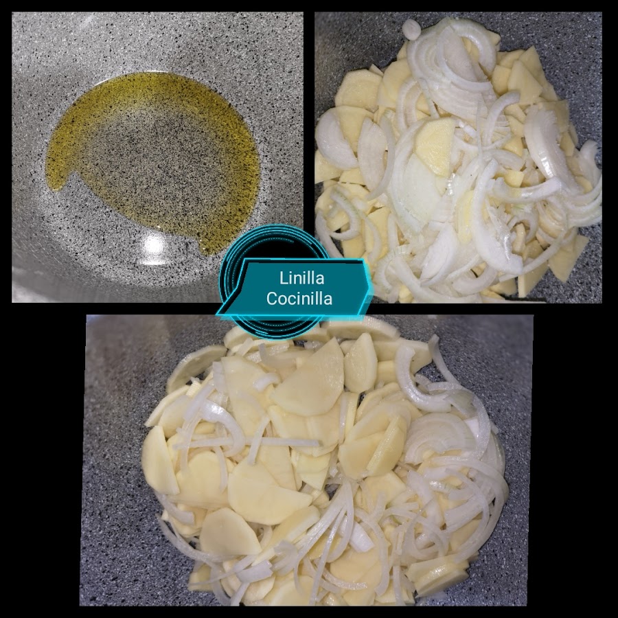 1. Preparamos los ingredientes. Pelamos y cortamos las patatas al igual que la cebolla.