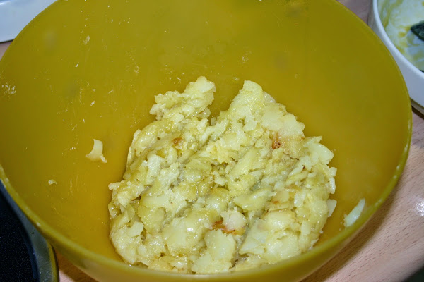 hasta que quede una masa homogenea, como no se como seran vuestras patatas de grandes, mirad a ver si a lo mejor hace falta otro huevo si lo veis que no queda jugoso en este punto del batido ( yo ahi, pruebo de sal a ver como esta)