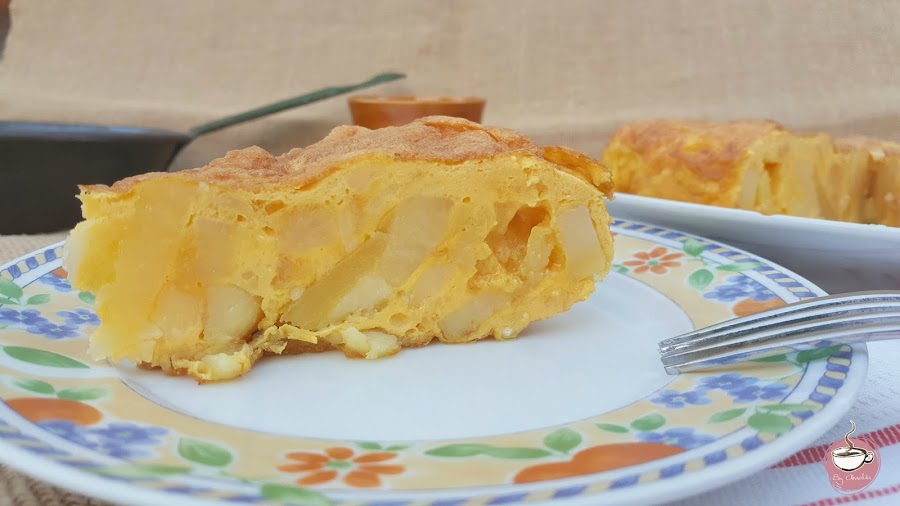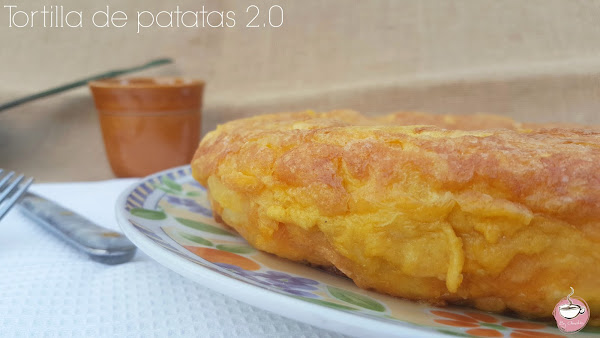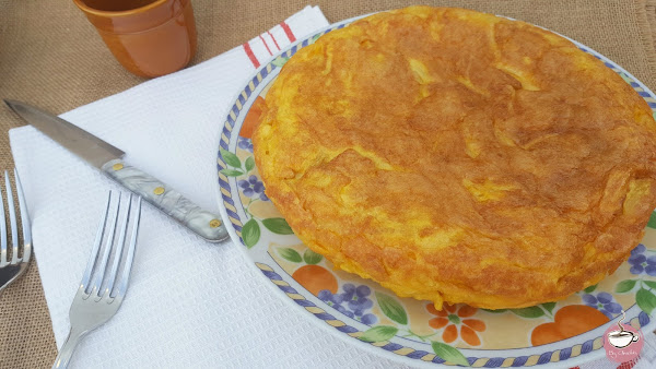 El caso es que cuando le sobran de la comida las aprovecha para hacer tortilla. Ella lo tiene más fácil porque cuando va a hacerla ya tiene las patatas cocidas, con lo que ese paso se lo salta.... Sea como sea, yo la hice para cenar el otro día y no me resultó complicada. Aun teniendo que cocer las patatas tardé mucho menos tiempo en prepararla que una normal con la patata frita. Me gustó por el sabor y sobre todo porque, aunque lleve aceite, es mucho más ligera que la tradicional. La cantidad de aceite que se emplea es mucho menor.