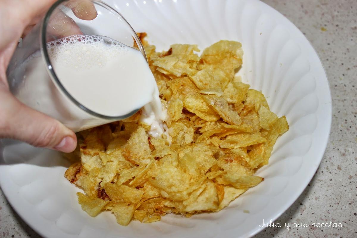Le añadimos a las patatas la leche y dejamos que se ablanden durante unos minutos.