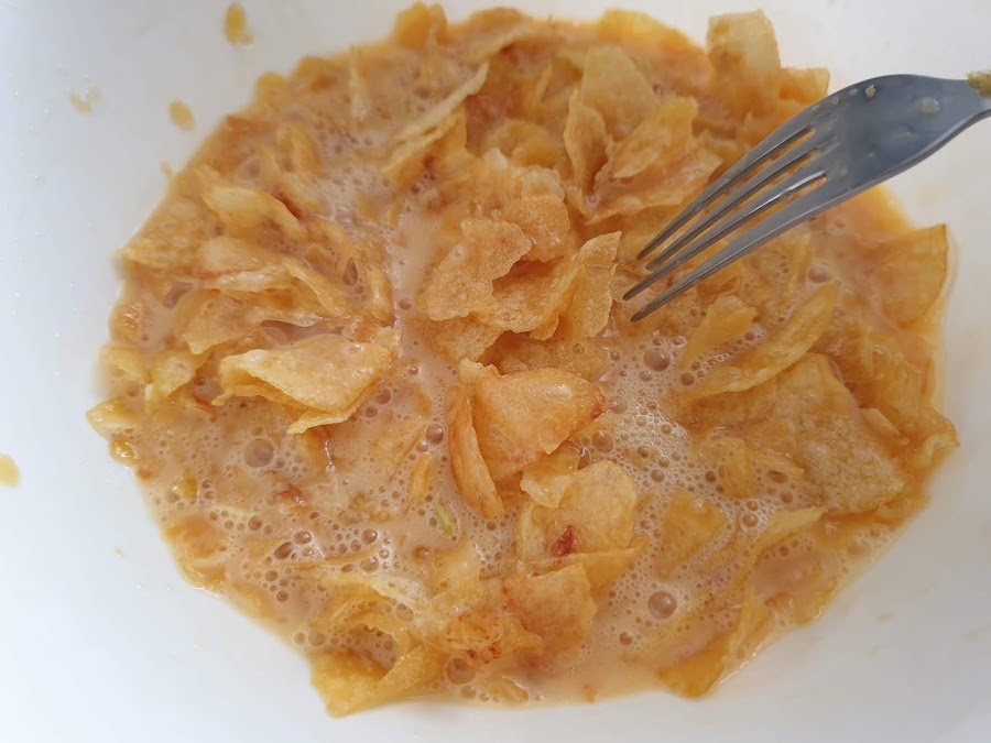 Y otra cosita más, que nos sirve para aprovechar el final de los paquetes de patatas, que se han desecho y quedan trocitos muy pequeños, así que es perfecta!!!