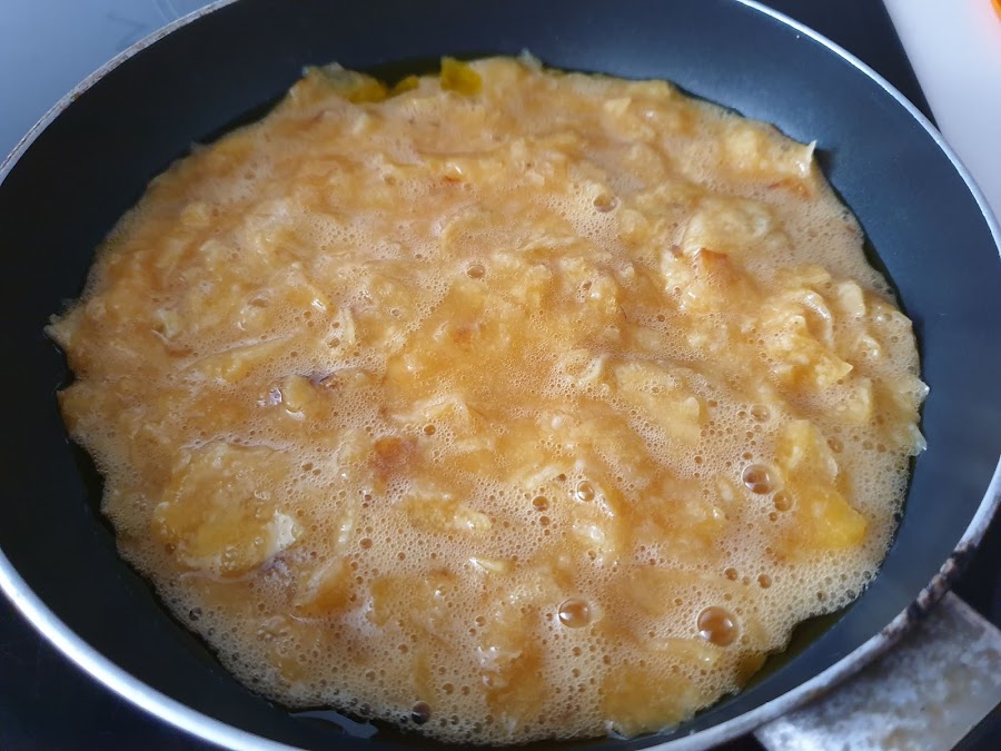 4. - Un poco de aceite de oliva en la sartén y como una tortilla normal, 3 o 4 minutos por cada lado....
