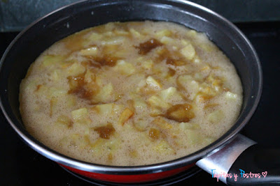 Y la cuajamos en la sartén con un poco de aceite. Primero por un lado y cuando veamos que los bordes se despegan de la sartén, damos la vuelta y cocinamos por el otro lado.