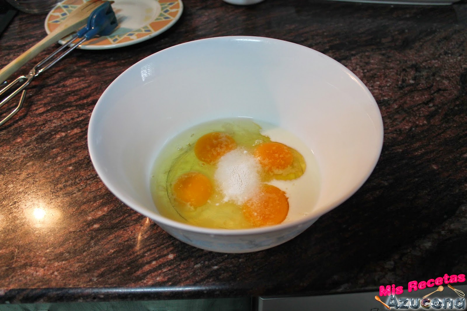 En un bol pondremos los huevos, la levadura, la leche, una pizca de sal y batimos todo, una vez lo tengamos todo batido lo colaremos todo.