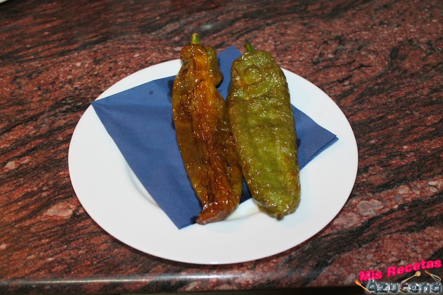Ponemos una sartén al fuego, a fuego medio con abundante aceite, una vez este cliente freiremos los pimientos, una vez listos los sacaremos y los pondremos sobre un trozo de papel de cocina absorbente para quitarle el exceso de aceite.