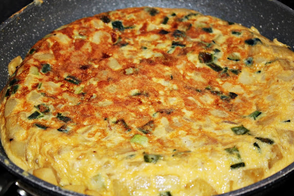 Continúa dando vueltas a la tortilla hasta que quede cocida a tu gusto.