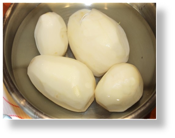 4 patatas medianas variedad monalisa (las puse gallegas y no quedaron muy bien su peso neto fue de 760 gr.)