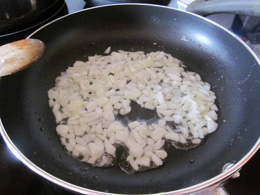 Hacemos un sofrito con un poco de aceite y la cebolla picadita a fuego lento.