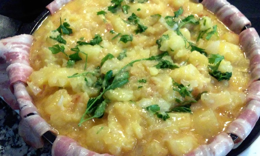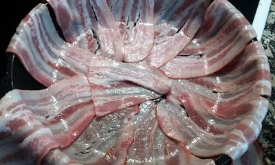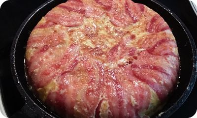 El fuego debe estar medio-bajo para que no se nos queme el bacon y se haga lentamente por dentro , sin prisas.