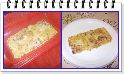 Pelamos la patatas y la cortamos en rodajas no muy finas. Ponemos el agua, el aceite, la patata, la sal y la pimienta en el estuche de vapor. Cerramos el estuche y vamos al microondas, programamos 7 minutos a potencia máxima (800 W). En un plato batimos un huevo y le ponemos un puñadito de cebolla frita crujiente, mezclamos bien, y luego mezclamos con las patatas, volvemos a cerrar el estuche y al microondas de nuevo 2 minutos. Y listo, ya tenemos una tortilla de patatas en 9 minutos, y más sana, ya que no lleva tanto aceite al no ser las patatas fritas...Muy rica