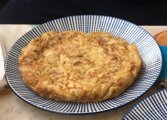 Hoy vuelvo con el aprovechamiento en la cocina, esta vez os traigo una tortilla de patatas paja y cebolla crujiente, sobraron patatas del aperitivo y el desayuno del dia siguiente fue sensacional!!! muy fácil y muy rica, con esta receta participo en el proyecto reciclando sabores, un proyecto muy interesante que capitanea Rosalía, si queréis saber mas pinchad aquí.