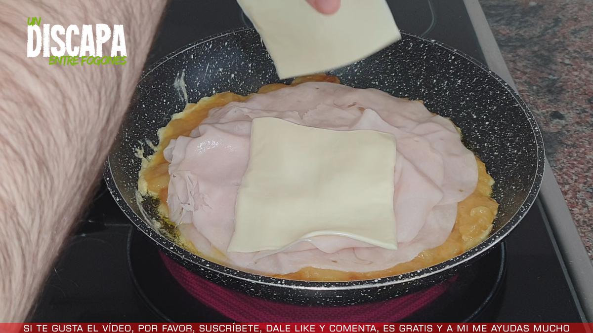 Muy buenas discapas y discapos hoy os traigo una deliciosa tortilla de patatas rellena de jamón y queso.