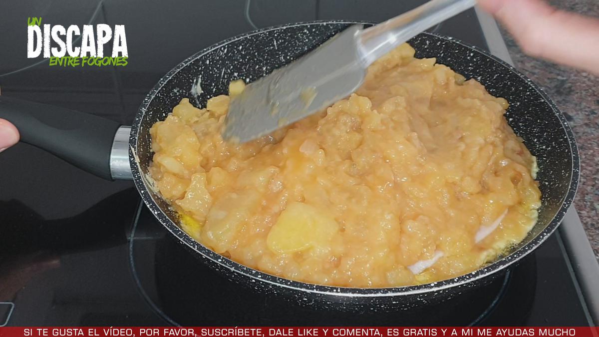 9Cuando la tortilla ya está cuajada por un lado, toca darle la vuelta.