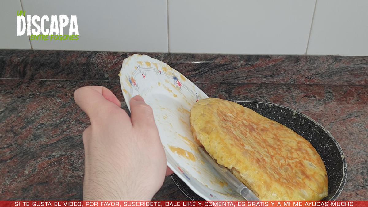 Para ello, ponemos un plato sobre la sartén y con un movimiento rápido le damos la vuelta sujetando con firmeza tanto el plato como la sartén.