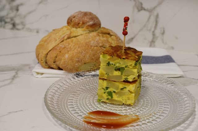 Hoy vengo con una tortilla muy sencilla y muy rica, perfecta para las cenas de verano en la terraza, de esas que preparas con antelación y tienes lista después. Aunque a mi me gustan mas recién hechas, yo no digo que no a un trozo al día siguiente, para el desayuno esta también muy rica!!