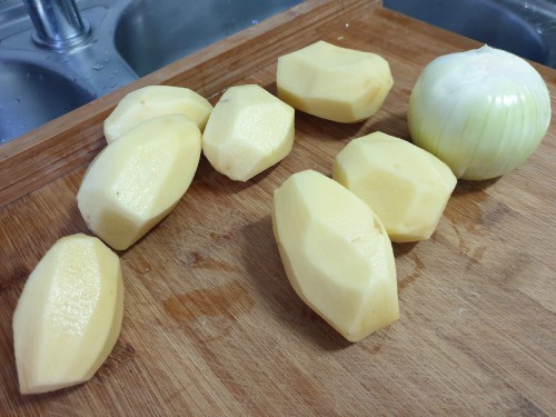 1.- Pelar y cortar las patatas como para tortilla.
