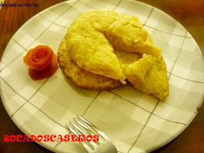 Aove Elaboración: 1. Pelamos las patatas y las cortamos finas con la mandolina o con el cuchillo y cortamos la cebolla en juliana y las ponemos a freír hasta que estén blandas. 2. Las sacamos y escurrimos, mientras batimos los huevos y los mezclamos con las patatas. 3. Ponemos en una sartén un poco de aove y echamos la mezcla y dejamos cuajar a fuego lento y le damos la vuelta ayudando nos de un plato y cuajamos también. Yo he dejado una poco hecha y otra mas tostadita eso va a gustos.