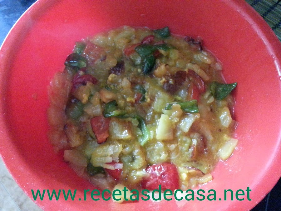 Retiramos y añadimos al bol. Removemos y mezclamos todo muy bien. Dejamos un par de minutos.