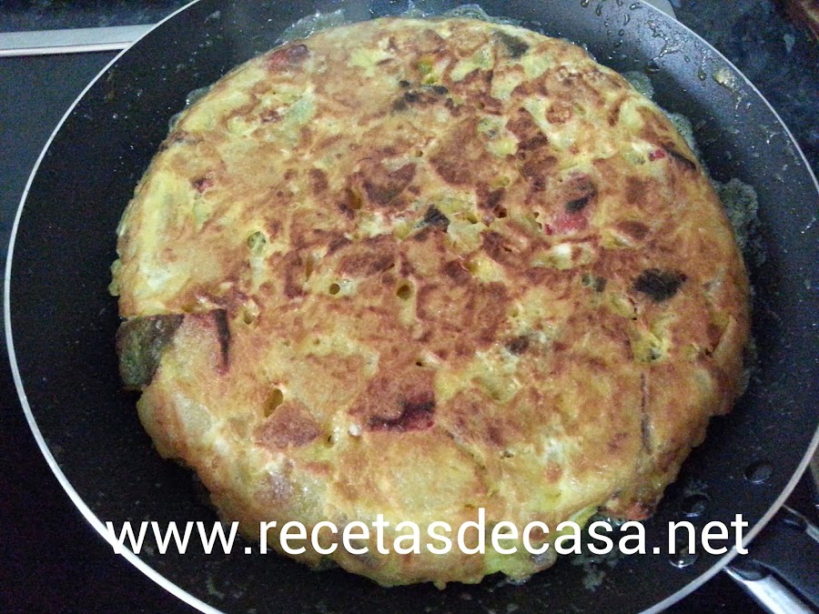 En una sartén antiadherente con un poquito de aceite y bien caliente, cuajamos la tortilla.