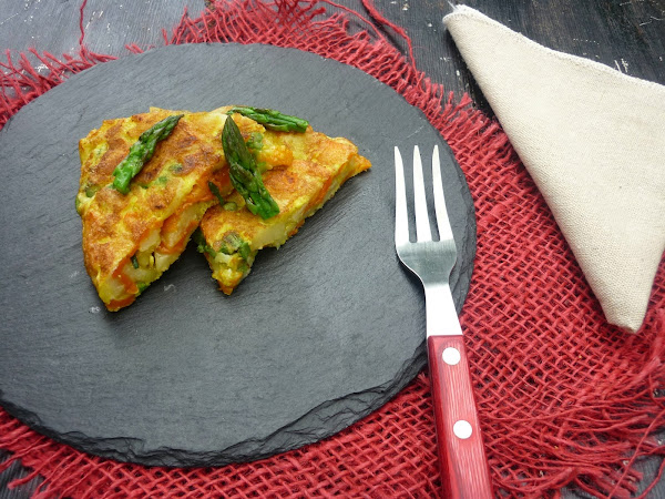 La tortilla es un fijo todas las semanas, ya sea en comidas o cenas, pero de ella no nos cansamos. Con zanahoria ya la hiciera varias veces, pero con espárragos no. Aprovechando que me quedaban unos pocos, ésta fue la ocasión.