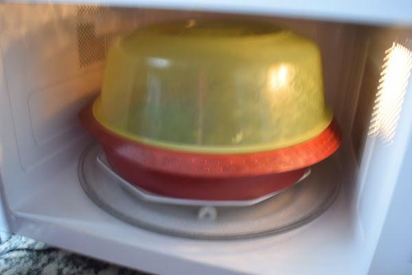 Programa 10 minutos a máxima potencia. Espera un par de minutos antes de abrir la puerta del microondas. Remueve y programa 5 minutos más. Comprueba si están tiernas, si no es así ponlas de nuevo un poco más. Saca a un bol y reserva.
