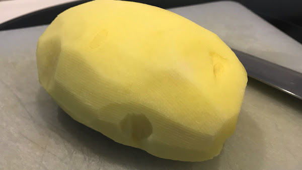 Pela las patatas, repásalas con una puntilla, enjuágalas en agua y una vez límpias, sécalas.