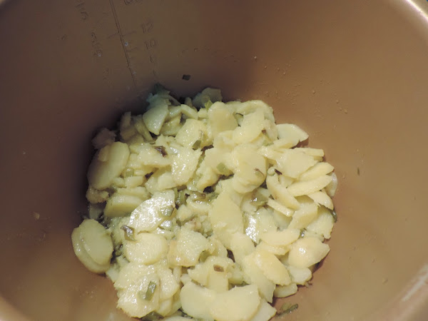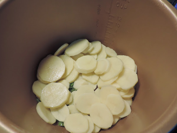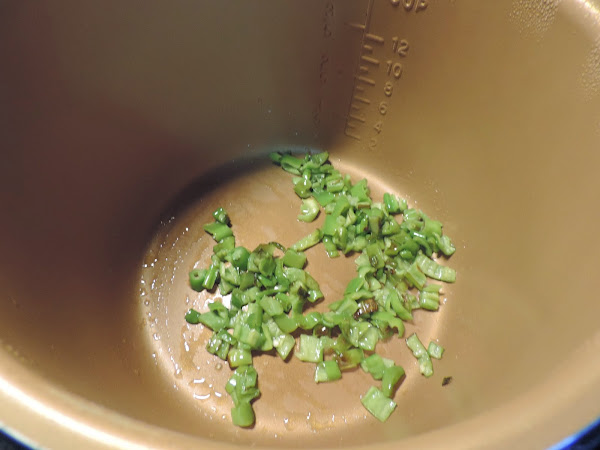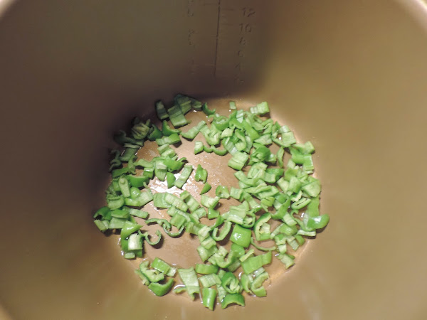 Ponemos unas gotas de aceite de oliva en la cubeta de la olla.