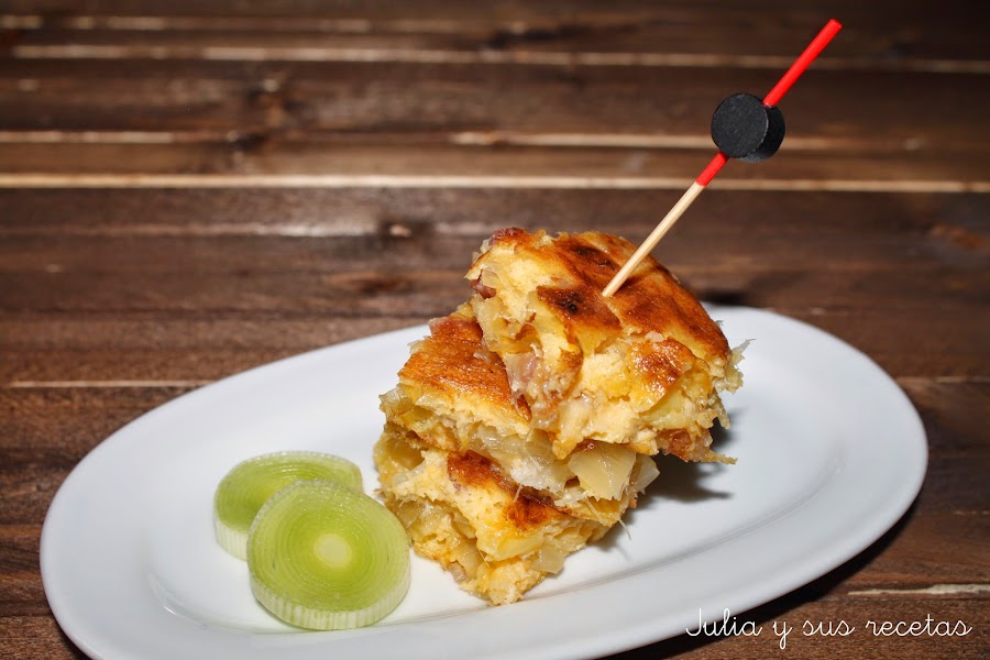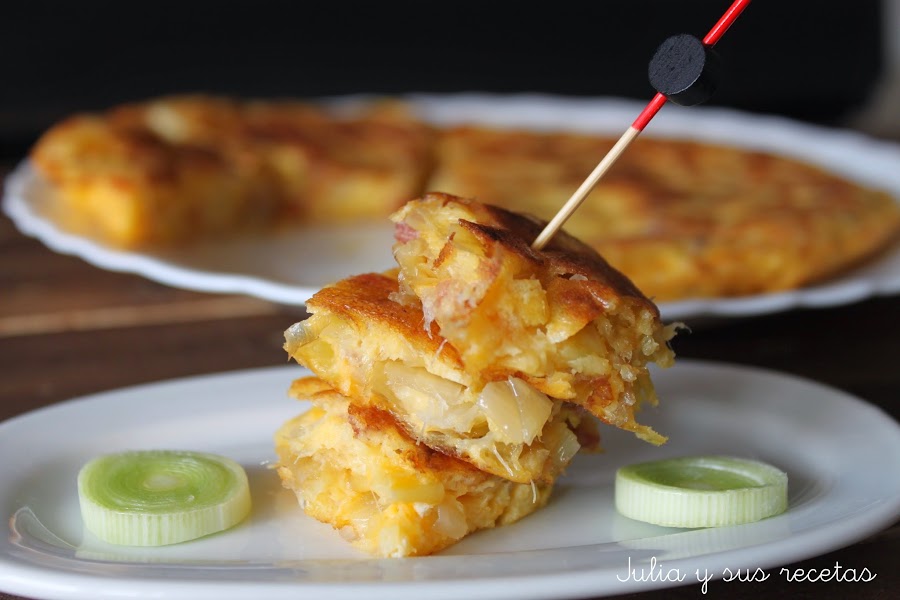 Para salir un poco de la rutina de tortilla de patatas, hoy os traigo una tortilla muy sabrosa, de puerros y bacon.
